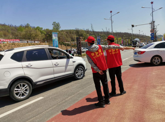 協(xié)助景區(qū)衛(wèi)生部門對游客進(jìn)行測溫、消毒,提供口罩。