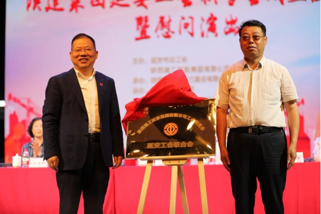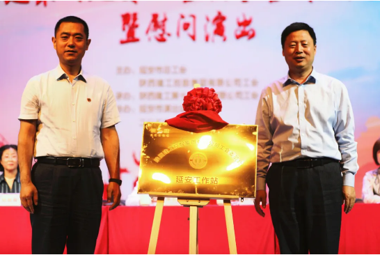 陜西省建設(shè)工會主席徐富權(quán)同志,陜建集團(tuán)黨委常委、工會主席劉小強同志共同為陜西建工集團(tuán)工會延安工作站揭牌。