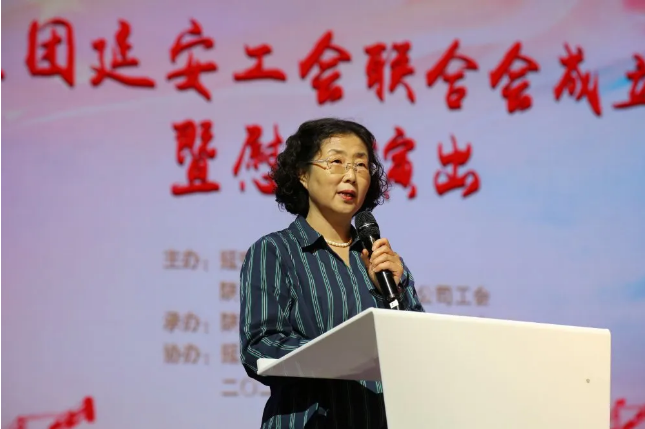 陜建集團(tuán)女工委主任、機關(guān)工會主席劉愛英同志宣讀陜建集團(tuán)工會成立延安工作站的文件。